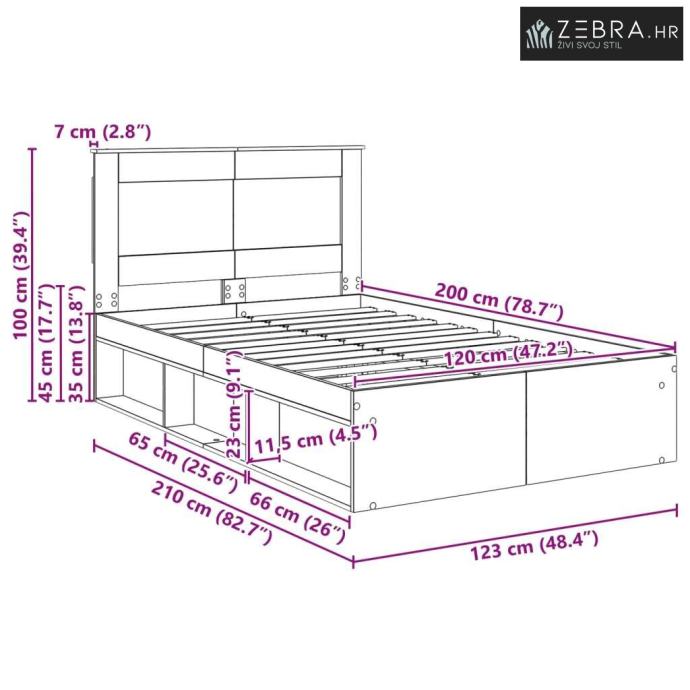 Detalji komponenata: Okvir uključuje fiksni letvičasti okvir i čvrsti naslon od borovine, osmišljeni da pruže udobnost. Letvičasti okvir potiče ventilaciju madraca, a naslon od borovine dodaje dozu elegancije.