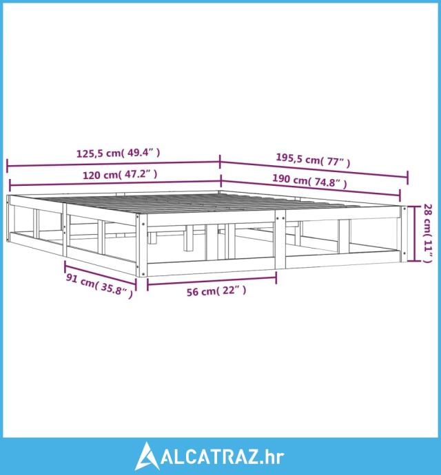- Ovaj okvir kreveta prikladan je za madrac dimenzija 120 x 190 cm (mali bračni 4FT).