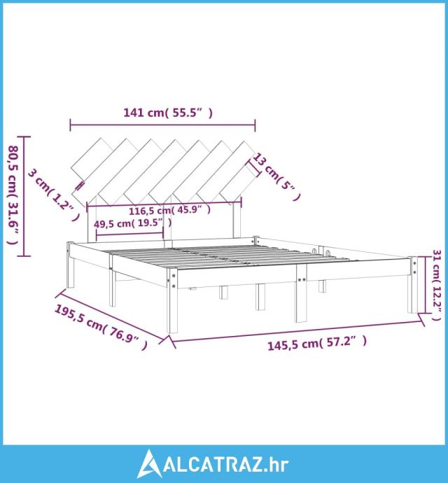 - Dimenzije okvira za kreveta: 195,5 x 145,5 x 31 cm (D x Š x V)
