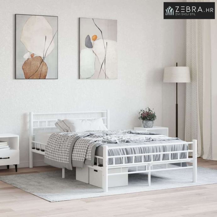 Okvir za krevet bijeli metalni 140 x 200 cm - Bijela 140 x 200 cm