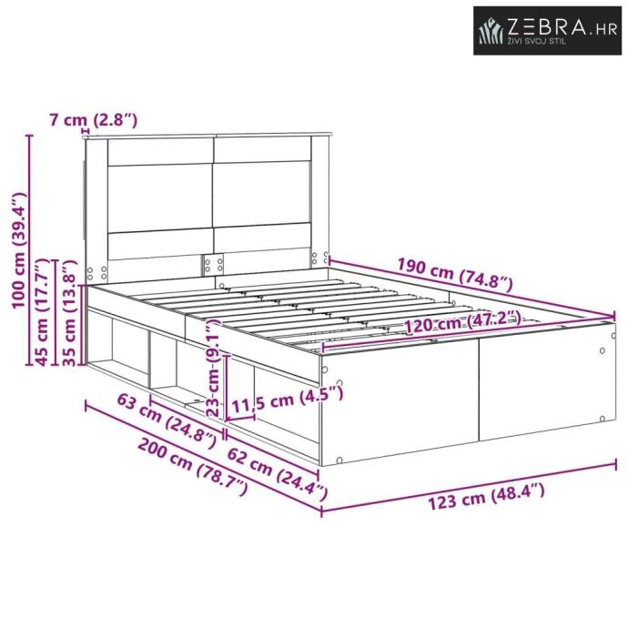 Detalji komponenata: Okvir uključuje fiksni letvičasti okvir i čvrsti naslon od borovine, osmišljeni da pruže udobnost. Letvičasti okvir potiče ventilaciju madraca, a naslon od borovine dodaje dozu elegancije.