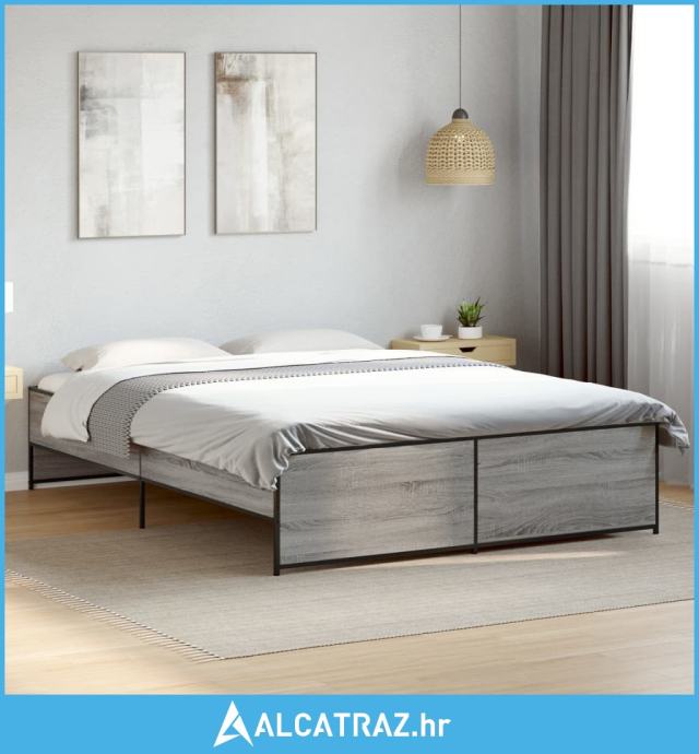 Okvir za krevet boja hrasta 150x200cm konstruirano drvo i metal - NOVO