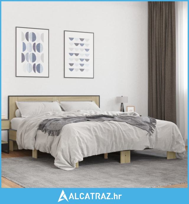 Okvir za krevet boja hrasta 150x200cm konstruirano drvo i metal - NOVO