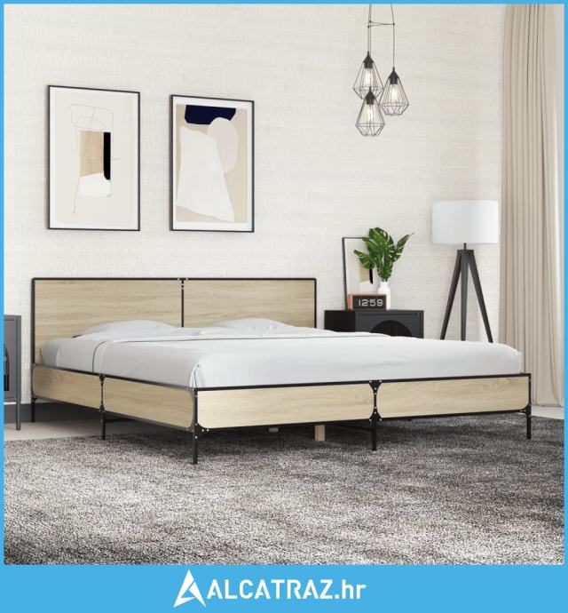 Okvir za krevet boja hrasta 180x200cm konstruirano drvo i metal - NOVO