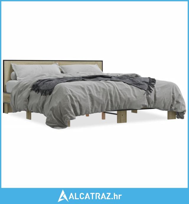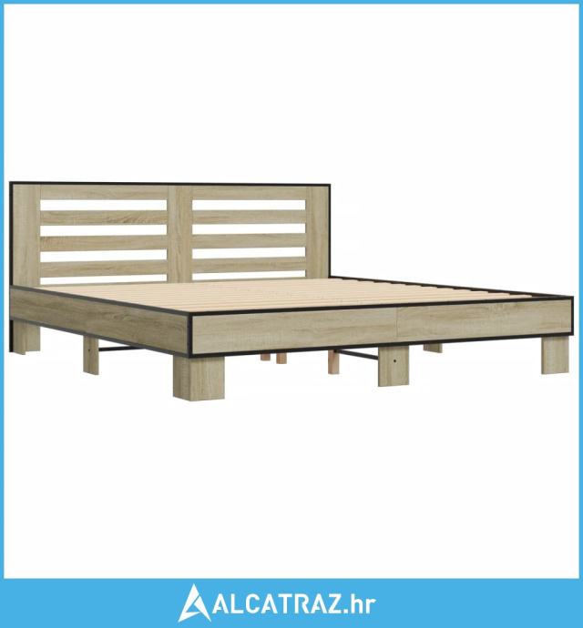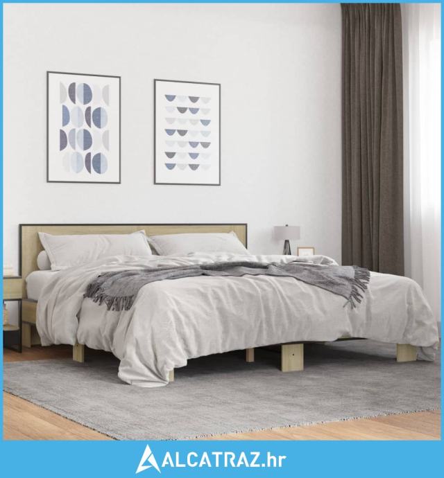 Okvir za krevet boja hrasta 200x200cm konstruirano drvo i metal - NOVO
