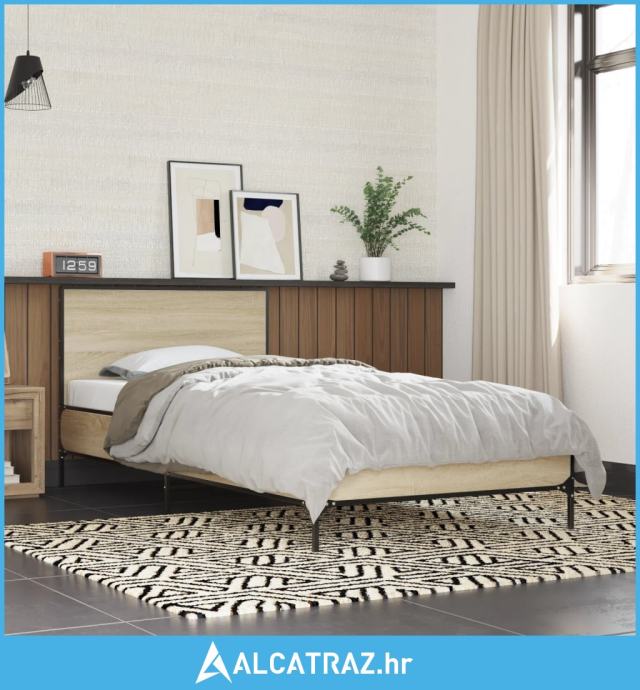 Okvir za krevet boja hrasta 75x190 cm konstruirano drvo i metal - NOVO