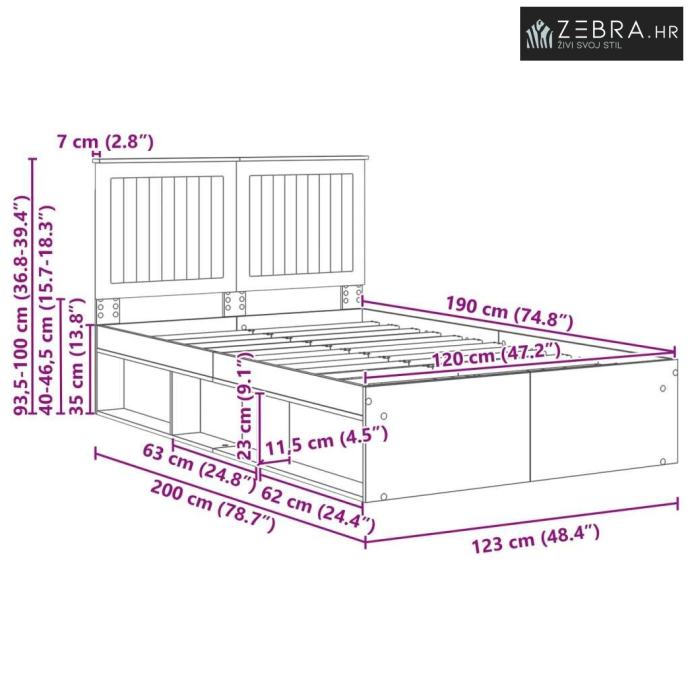Veličina madraca: Mali dvostruki kratki (120 cm x 190 cm / 47"