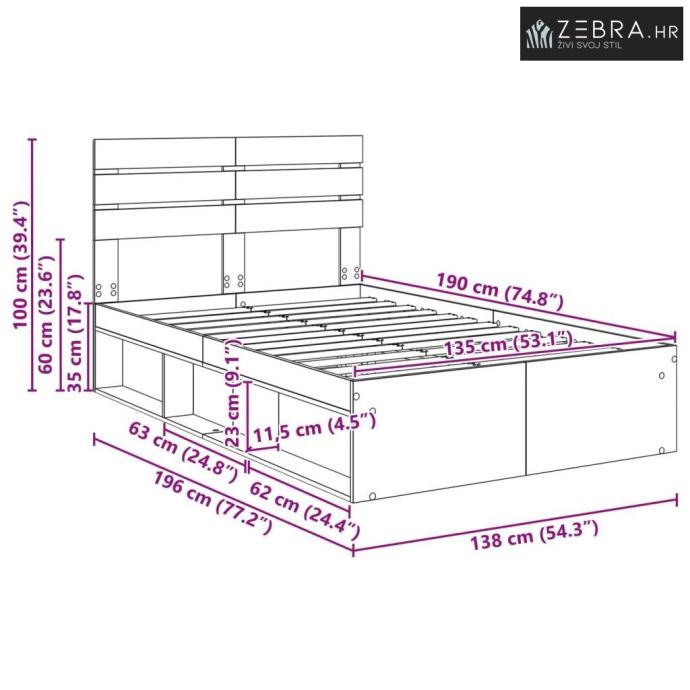 Veličina madraca: Britanski dvostruki (135 cm x 190 cm / 54" x 75")