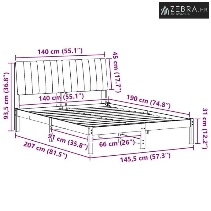Platformni letvičasti okvir: Čvrsta podrška za bilo koju vrstu madraca, usko raspoređene letvice održavaju madrac u savršenom obliku. Visina od 31 cm dodatno poboljšava ovu podršku, osiguravajući ugodan san bez saginjanja.