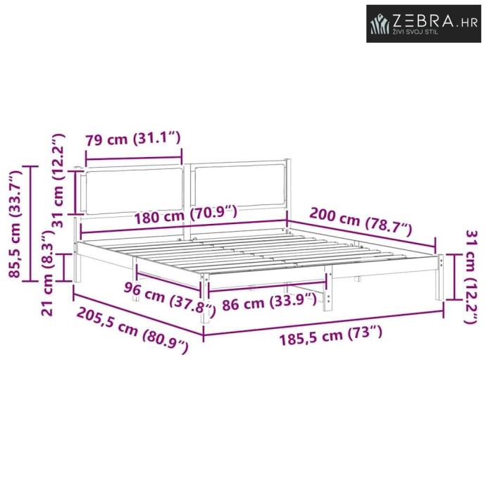 Izdržljivo borovo drvo Ovaj okvir kreveta napravljen je od visoko kvalitetne borovine, pružajući snagu i stabilnost. Prirodne karakteristike drveta osiguravaju dugotrajnost koja izdržava svakodnevno korištenje, nudeći izdržljivost s modernim izgledom. Njegova lijepa tekstura naglašava organsku ljepotu, stvarajući ugodnu atmosferu za odmor.