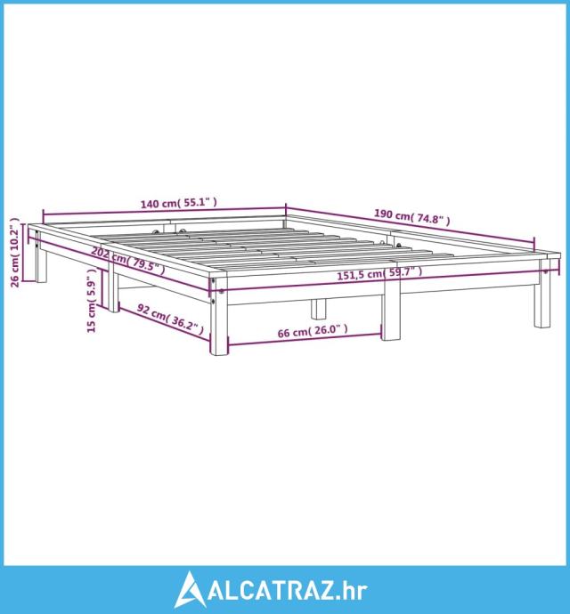 - Ovaj okvir za krevet prikladan je za madrac dimenzija 140 x 190 cm.