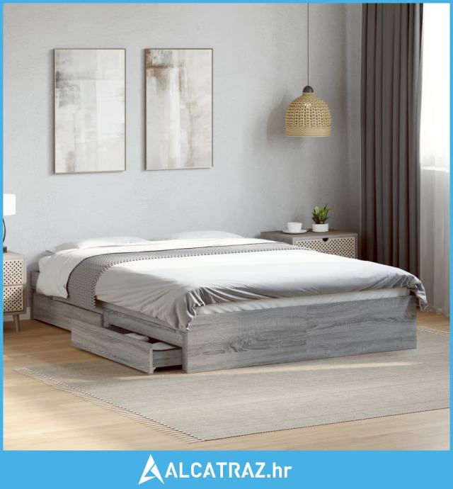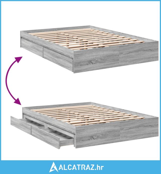 Okvir za krevet s ladicama boja sivog hrasta 120x190 cm drveni - NOVO