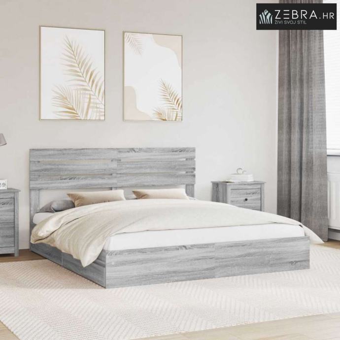 Krevet s od storage Siva Sonoma 200 x 200 cm Konstruirano drvo