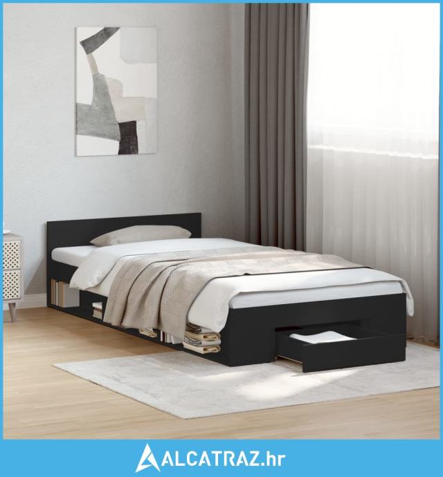 Okvir za krevet s ladicom crni 100x200 cm konstruirano drvo - NOVO