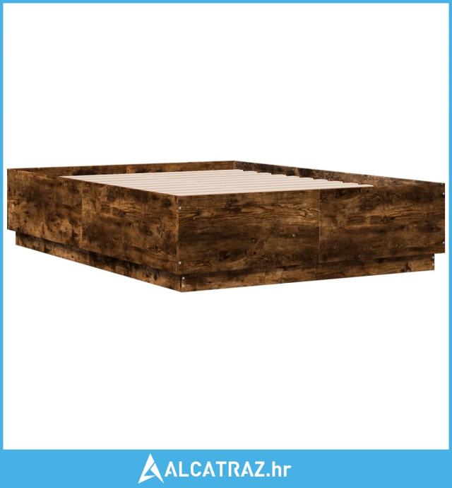 Okvir za krevet s LED svjetlima boja hrasta 140 x 190 cm drveni - NOVO