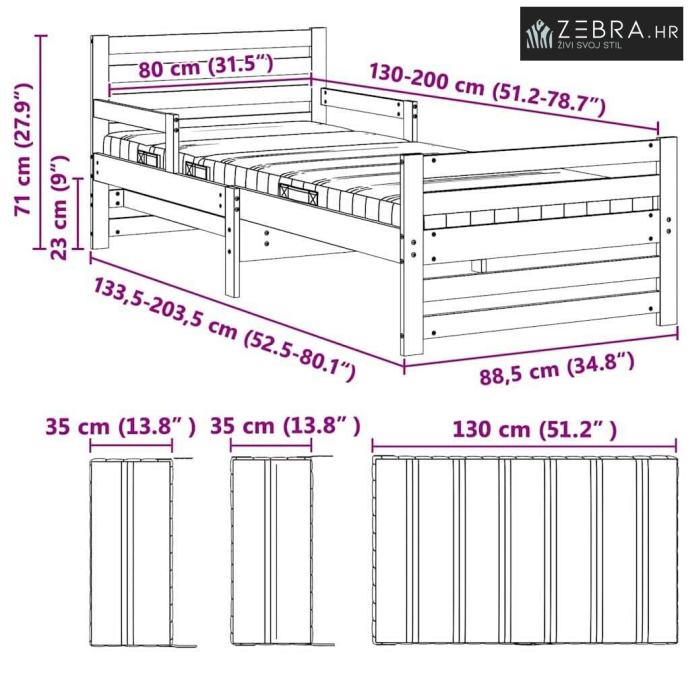 1 x Krevet: 203,5 x 88,5 x 71 cm (DxŠxV)