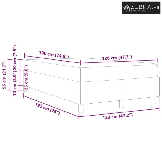 Veličina madraca: Mali dvostruki kratki (120 cm x 190 cm / 47" x 75")
