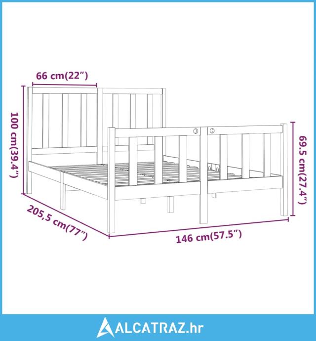 - Dimenzije okvira za krevet: 205,5 x 146 x 69,5 cm (D x Š x V)