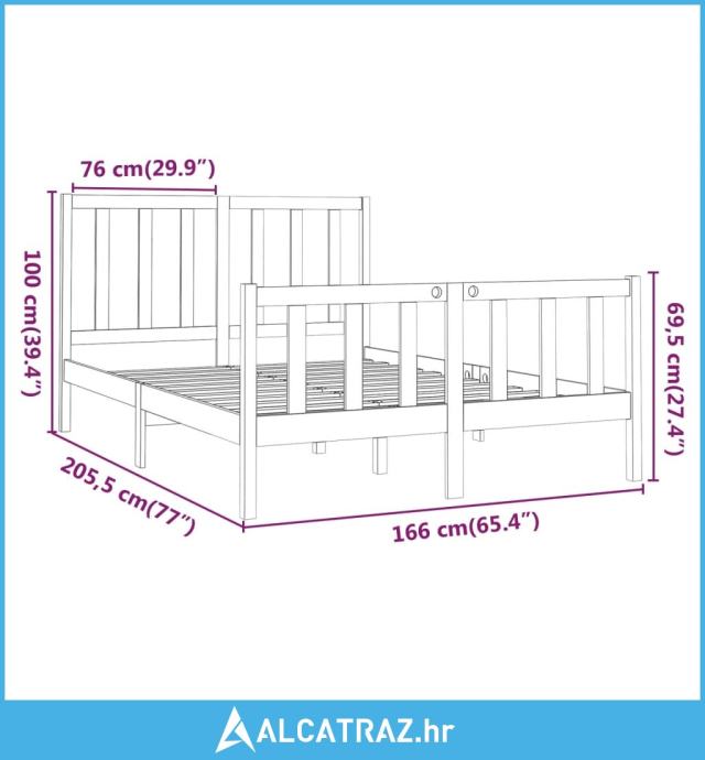 - Dimenzije okvira za krevet: 205,5 x 166 x 69,5 cm (D x Š x V)