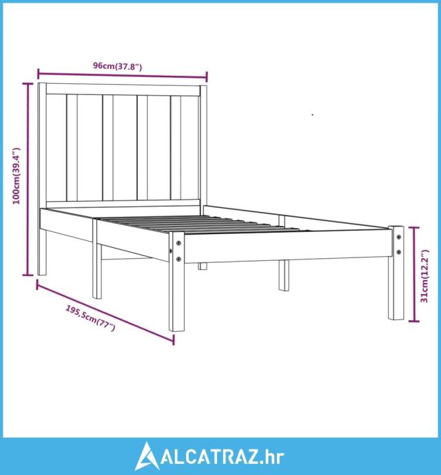 Okvir za krevet od masivne borovine 90x190 cm jednokrevetni - NOVO