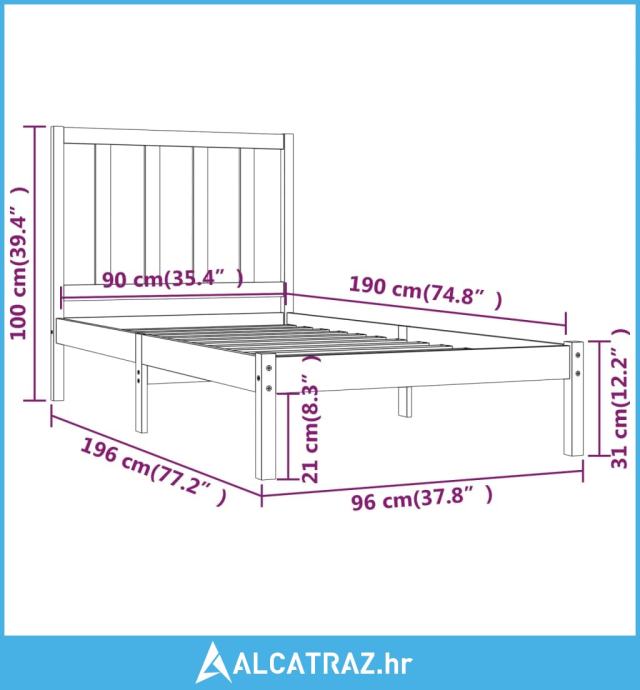 Okvir za krevet od masivne borovine 90x190 cm jednokrevetni - NOVO