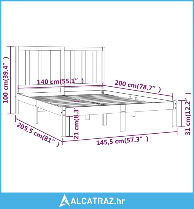 - Ovaj drveni okvir za krevet prikladan je za madrac dimenzija 140 x 200 cm.