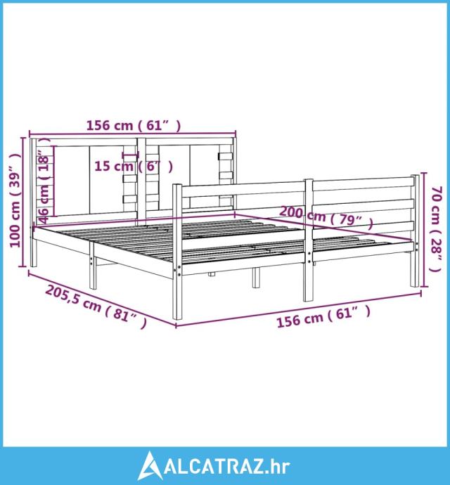 - Dimenzije okvira za krevet: 205,5 x 156 x 70 cm (D x Š x V)