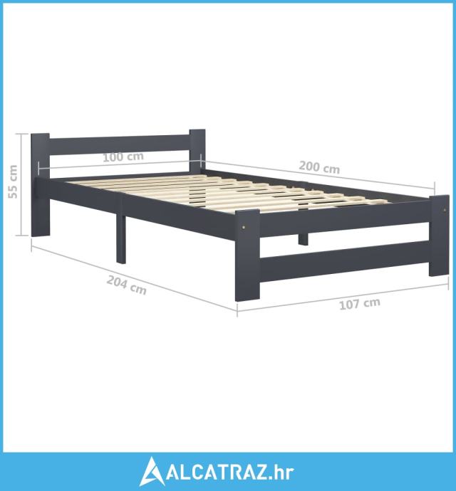 Okvir za krevet od masivne borovine tamnosivi 100 x 200 cm - NOVO
