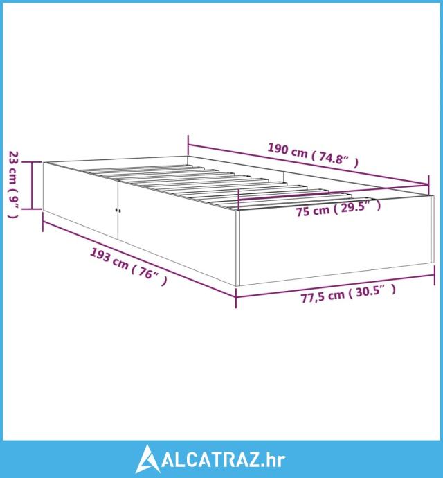 - Ovaj okvir kreveta prikladan je za madrac dimenzija 75 x 190 cm (jednokrevetni 2FT6).