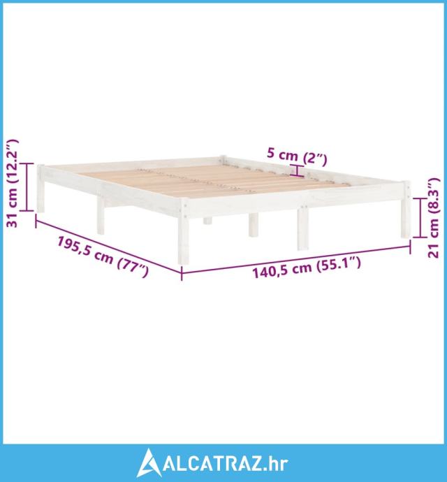 Okvir za krevet od masivnog drva bijeli 135x190 cm bračni - NOVO
