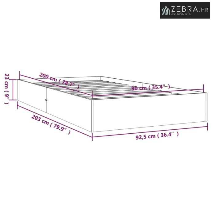 Ovaj okvir za krevet prikladan je za madrac dimenzija 90 x 200 cm.