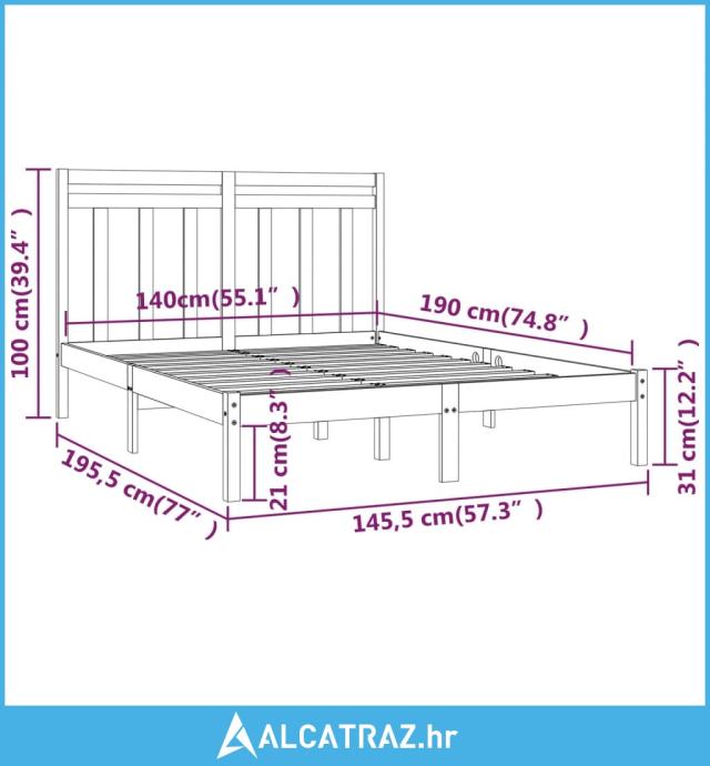 - Dimenzije okvira za kreveta: 195,5 x 145,5 x 31 cm (D x Š x V)