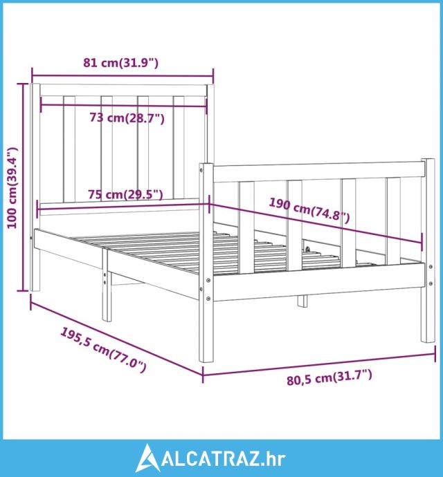 - Dimenzije okvira za krevet: 195,5 x 80,5 x 69,5 cm (D x Š x V)