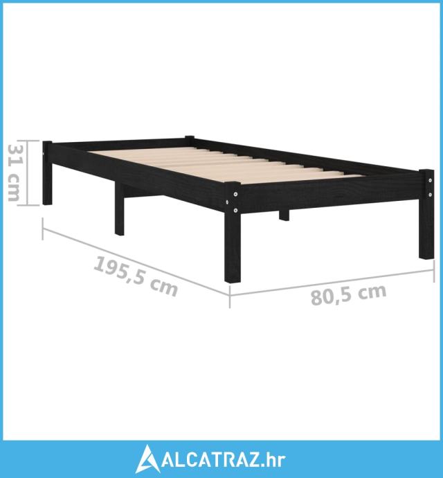 Okvir za krevet od masivnog drva crni 75 x 190 cm 2FT6 mali - NOVO