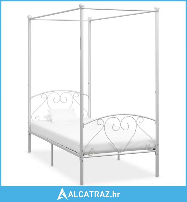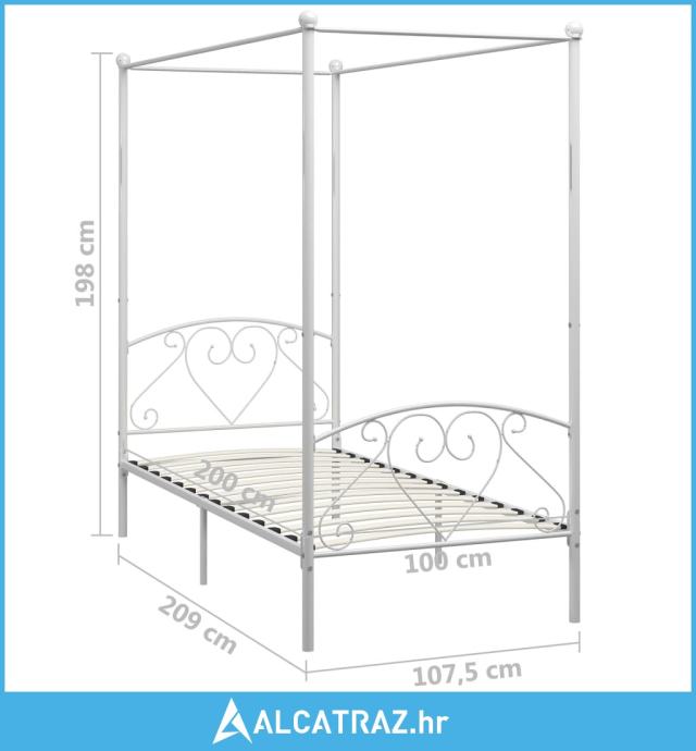 Okvir za krevet s nadstrešnicom bijeli metalni 100 x 200 cm - NOVO