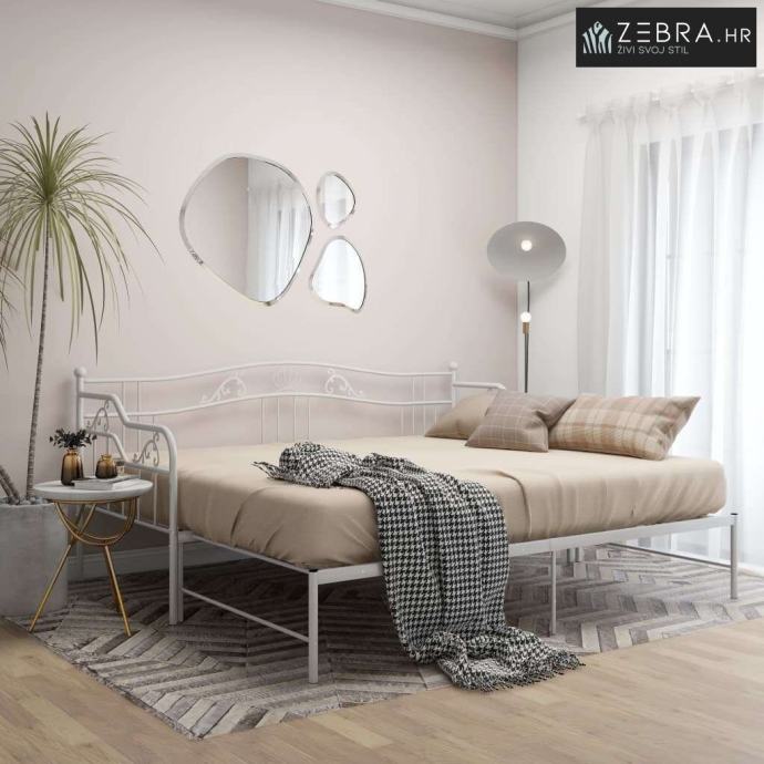 Možete lako pretvoriti ovaj komad namještaja u kauč tijekom dana i udoban krevet noću. Okvir za dnevni ležaj omogućuje maksimalan raspoloživi prostor za spavanje, osiguravajući prostor za spavanje za dvije osobe, što ga čini idealnim izborom za osobe s ograničenim prostorom za boravak. Štoviše, krevet za spavanje opremljen je bočnom rešetkom koja će spriječiti korisnika da se otkotrlja tijekom spavanja. Cijeli okvir za krevet ima čvrstu metalnu konstrukciju, zbog čega je vrlo izdržljiv i prikladan za svakodnevnu upotrebu.