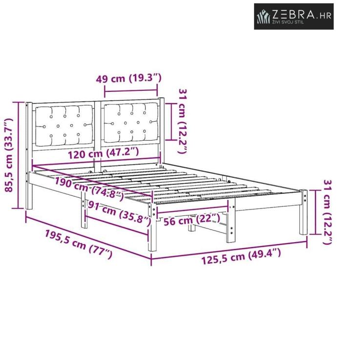 Veličina madraca: Mali dvostruki kratki (120 cm x 190 cm / 47" x 75")