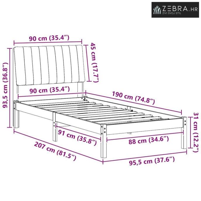 Veličina madraca: Kratki jednostruki (90 cm x 190 cm / 35" x 75")
