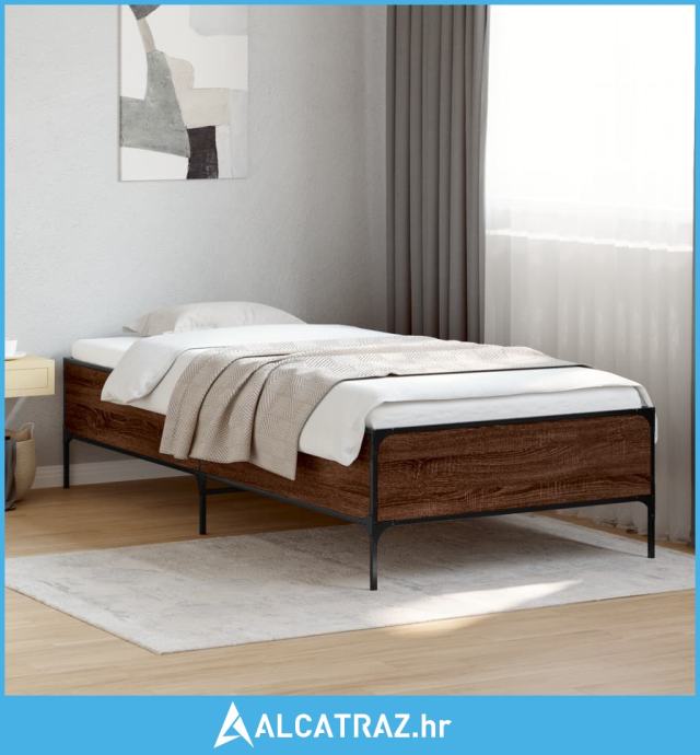 Okvir za krevet smeđi hrast 75x190 cm konstruirano drvo i metal - NOVO