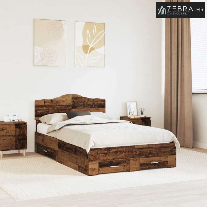 Funkcionalne komponente: Čvrsti, fiksni okvir s letvicama nudi podršku za kvalitetan san. Naslon od konstruiranog drva nadopunjuje estetiku dok donosi udobnost i ugodan vizualni dojam. Ugrađene ladice od istog materijala savršeno se uklapaju u okvir, optimizirajući pohranu, a da pritom ne kompromitiraju stil.