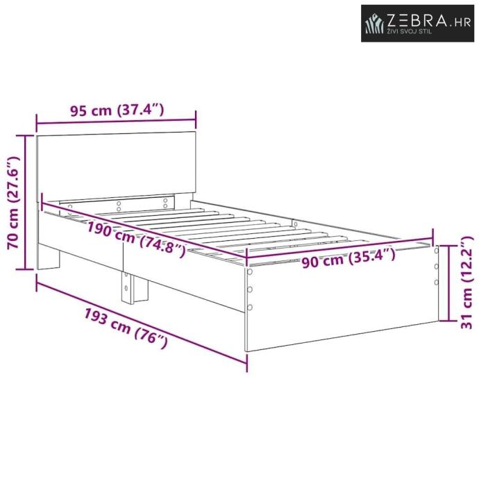 Veličina madraca: Kratki jednostruki (90 cm x 190 cm / 35" x 75")