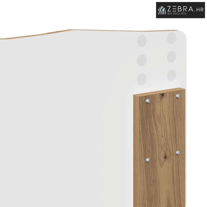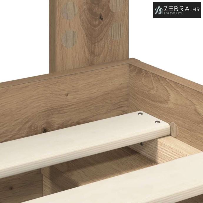 Materijali: Ovaj krevet je izrađen kombinacijom konstruiranog drveta i borovine, što mu daje čvrstoću i privlačnost. Korištenje ovih materijala osigurava dugovječnost uz toplinu i karakter u spavaćoj sobi.