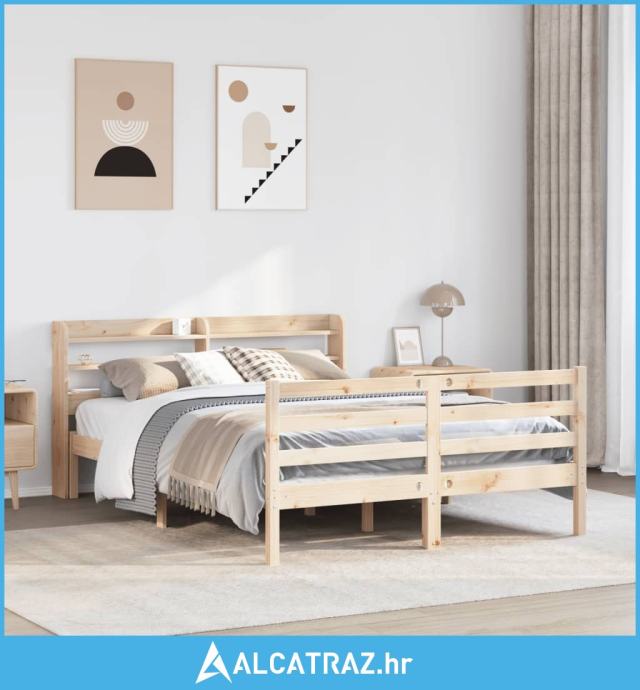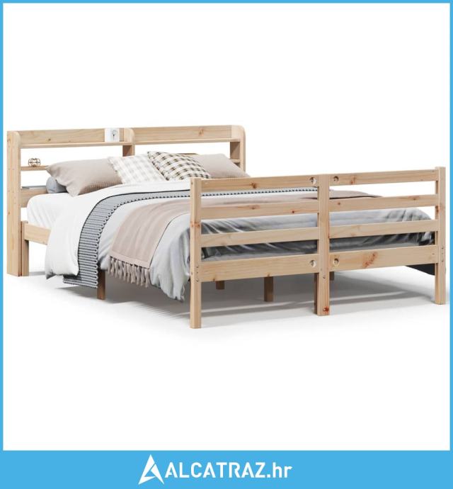 Okvir za krevet s uzglavljem 135 x 190 cm od masivne borovine - NOVO