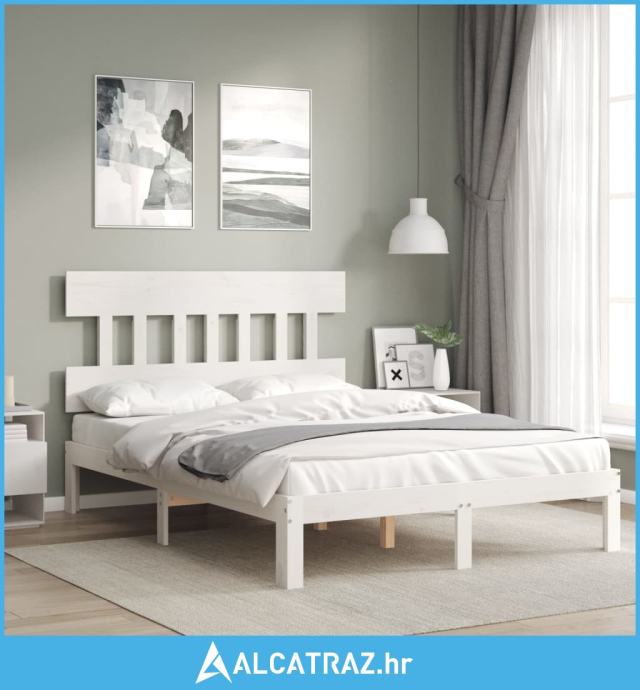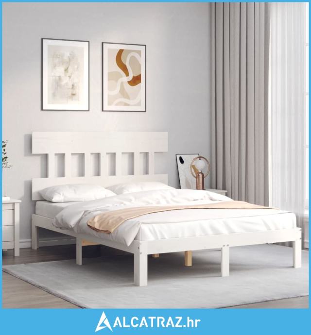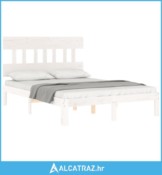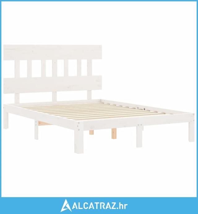 Okvir za krevet s uzglavljem bijeli 140x200 cm od masivnog drva - NOVO
