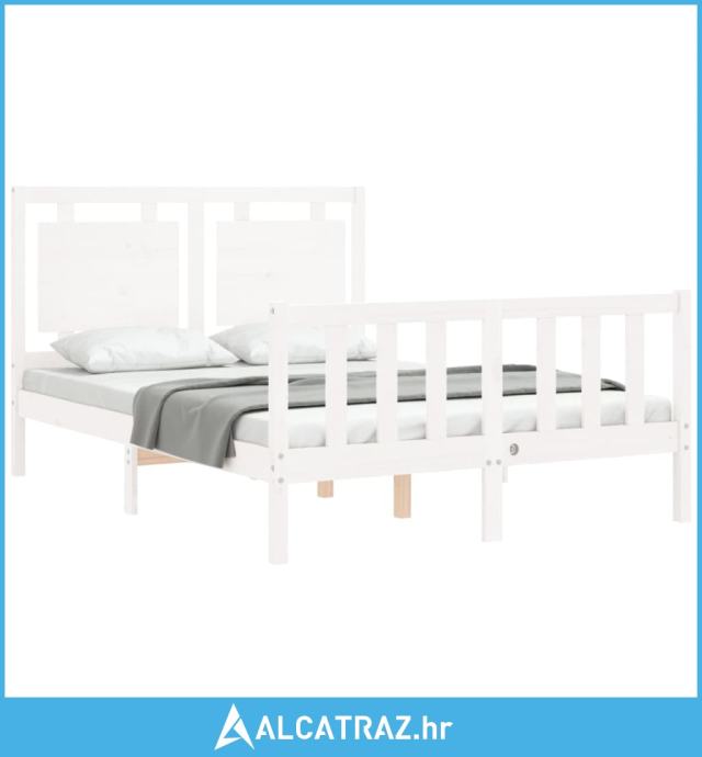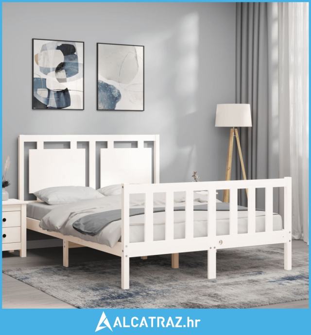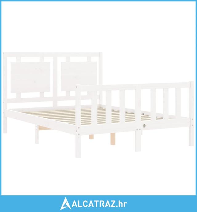 Okvir za krevet s uzglavljem bijeli 140x200 cm od masivnog drva - NOVO