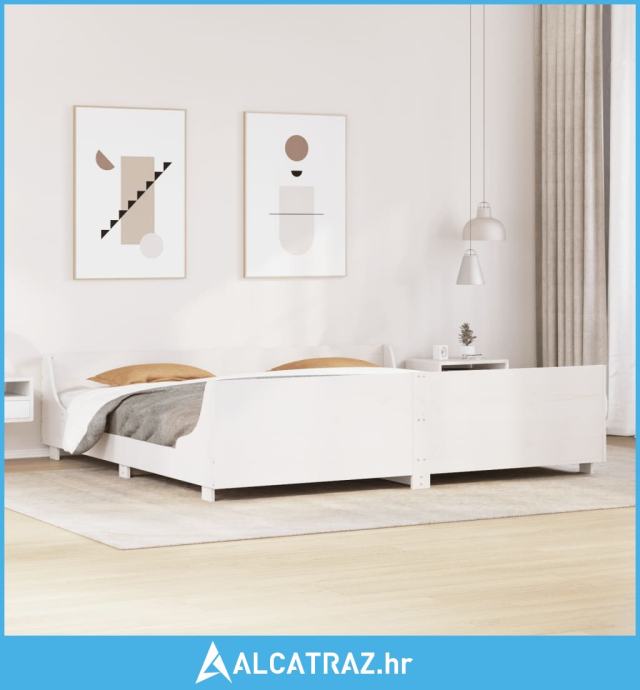 Okvir za krevet s uzglavljem bijeli 200x200 cm masivna borovina - NOVO