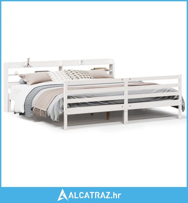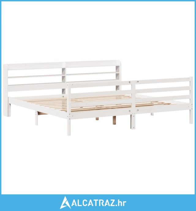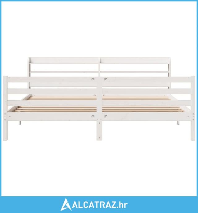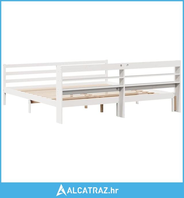 Okvir za krevet s uzglavljem bijeli 200x200 cm masivna borovina - NOVO