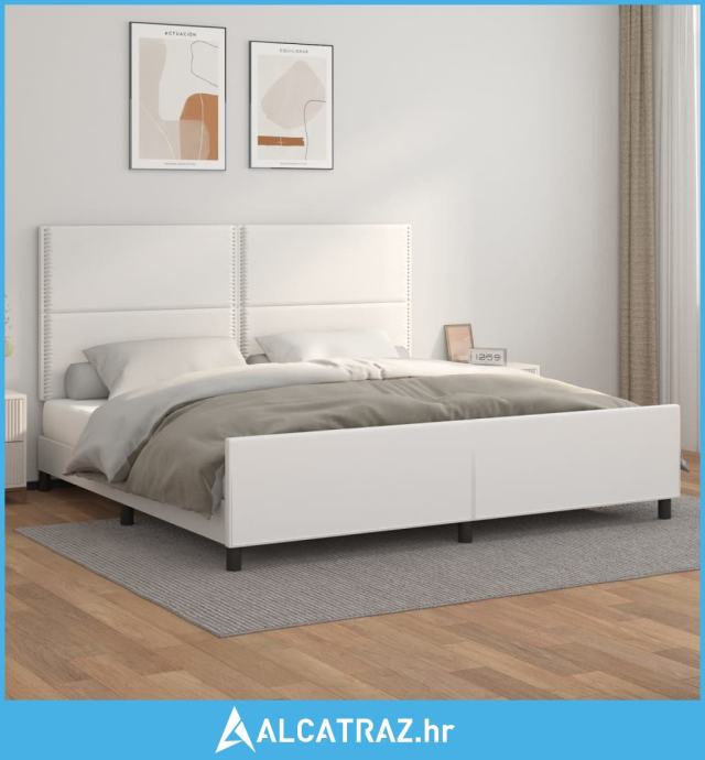 Okvir za krevet s uzglavljem bijeli 200x200 cm od umjetne kože - NOVO