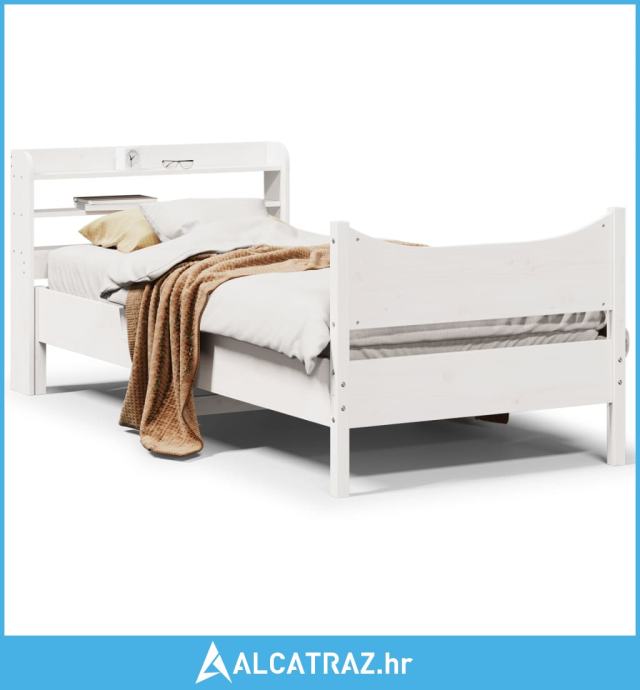 Okvir za krevet s uzglavljem bijeli 90x200 cm masivna borovina - NOVO