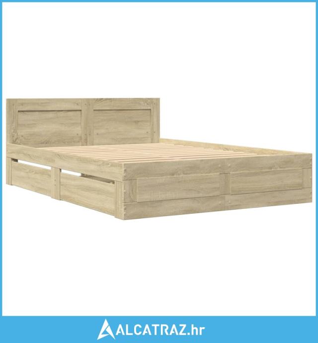 Okvir za krevet s uzglavljem boja hrasta 120x190 cm drveni - NOVO